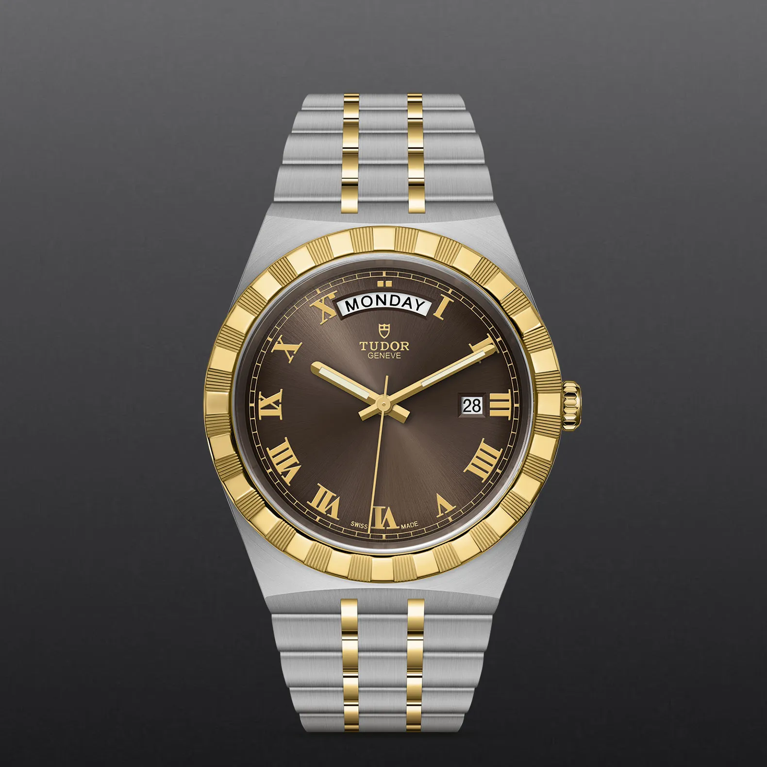 Gehäuse in Edelstahl, 41 mm, Schokoladenfarbenes Zifferblatt.