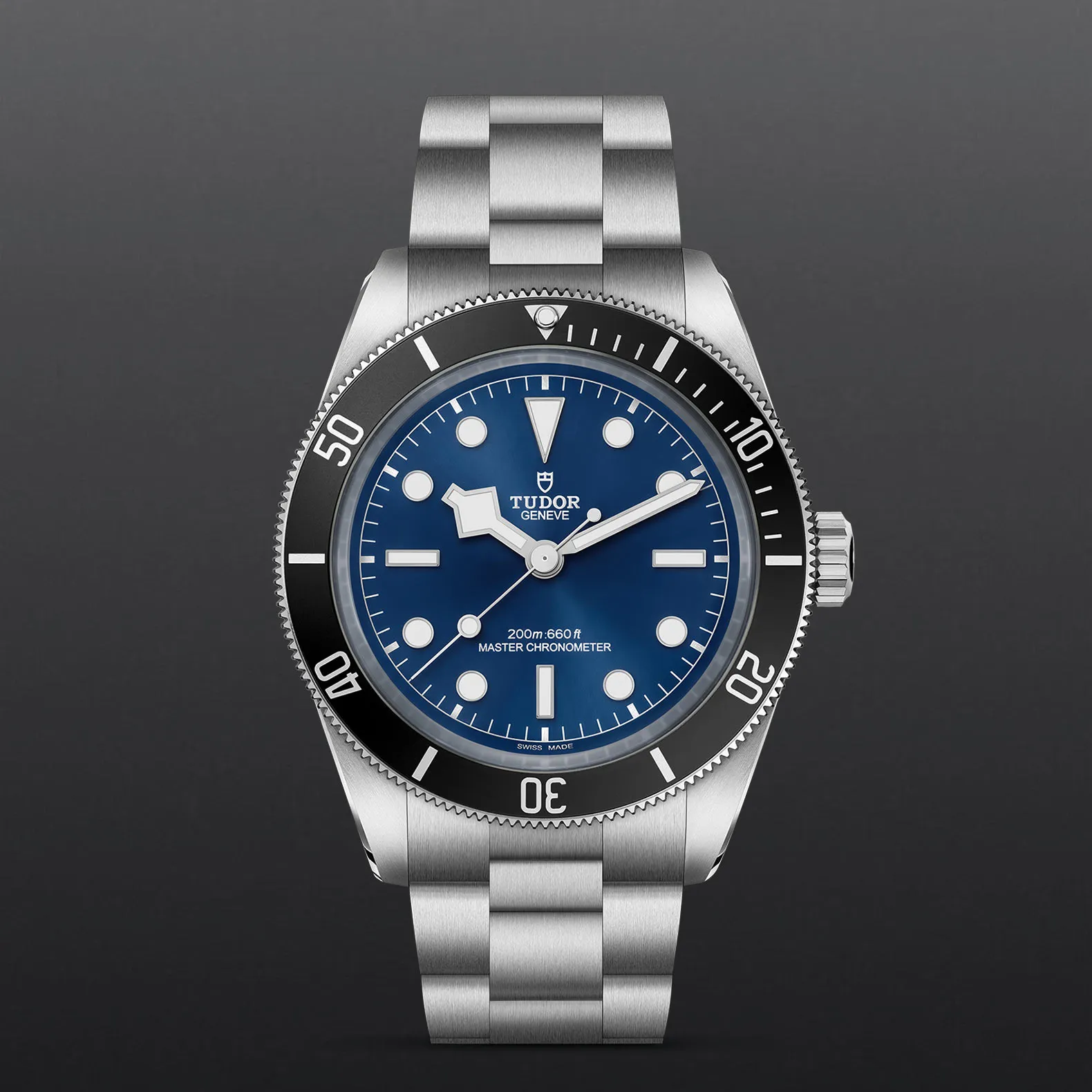 TUDOR Blau mit satinierter Oberfläche im Sonnenschliff, gewölbt, mit applizierten Stundenindizes.