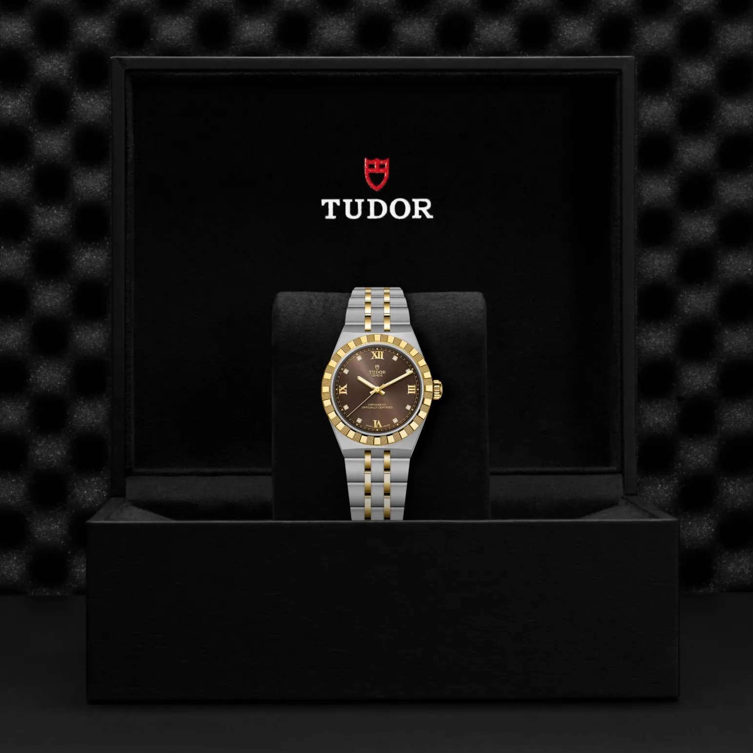Il nome Royal fu usato per la prima volta da TUDOR negli anni ’50 per sottolineare la qualità superiore dei suoi orologi. La linea TUDOR Royal rientra nella tradizione del Marchio di proporre segnatempo dallo stile sportivo ed elegante, con movimenti automatici e bracciali integrati, ad un prezzo accessibile ma che non scendano a compromessi sulla qualità. Orologi dalle prestazioni tecniche all’avanguardia e l’estetica raffinata, al crocevia tra i modelli classici e quelli sportivi, i segnatempo di questa linea sono disponibili in acciaio o acciaio e oro e proposti in quattro misure con una vasta selezione di quadranti.