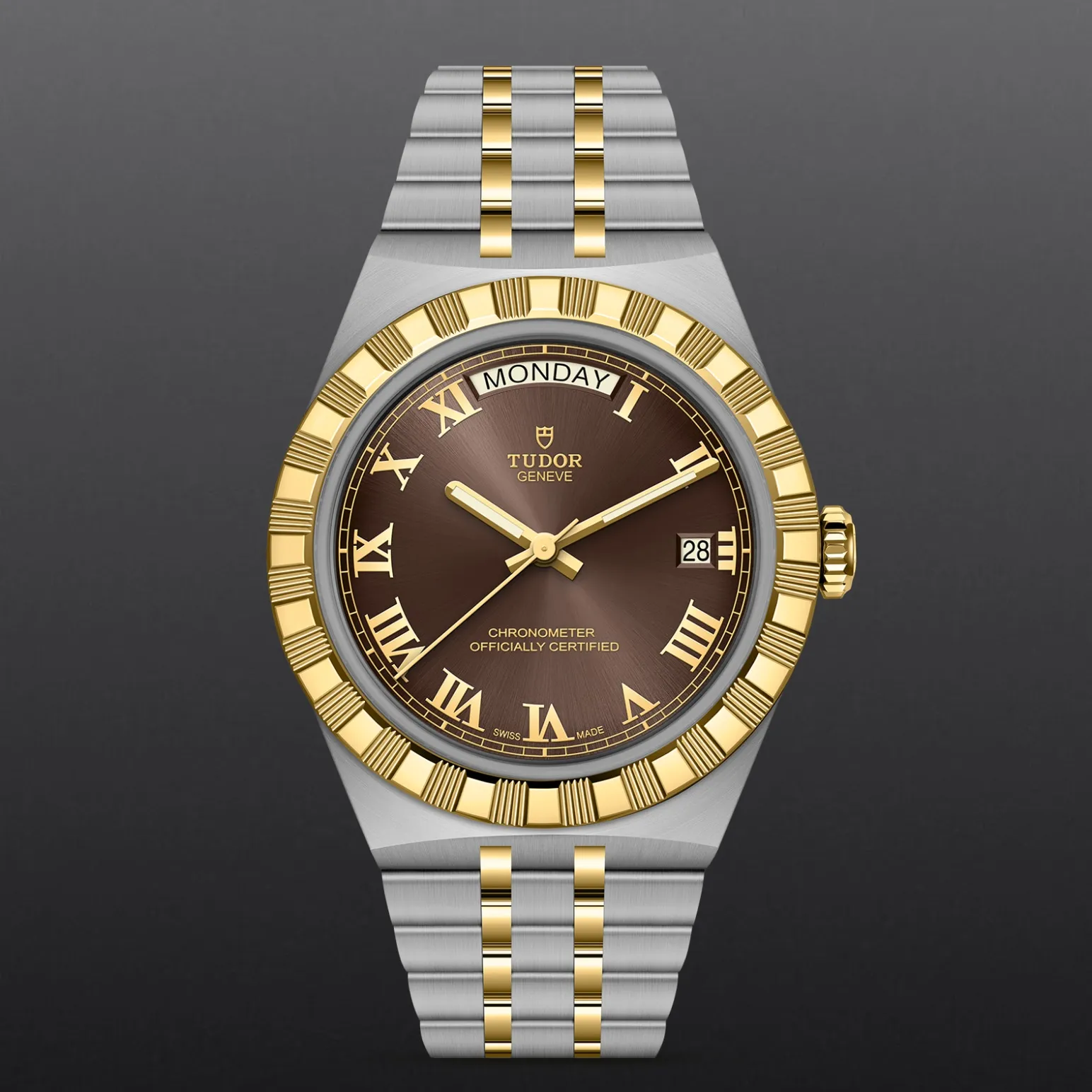 Il nome Royal fu usato per la prima volta da TUDOR negli anni ’50 per sottolineare la qualità superiore dei suoi orologi. La linea TUDOR Royal rientra nella tradizione del Marchio di proporre segnatempo dallo stile sportivo ed elegante, con movimenti automatici e bracciali integrati, ad un prezzo accessibile ma che non scendano a compromessi sulla qualità. Orologi dalle prestazioni tecniche all’avanguardia e l’estetica raffinata, al crocevia tra i modelli classici e quelli sportivi, i segnatempo di questa linea sono disponibili in acciaio o acciaio e oro e proposti in quattro misure con una vasta selezione di quadranti.