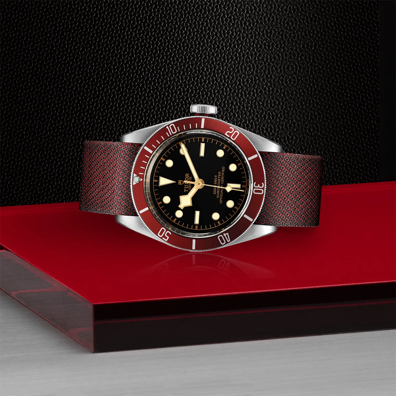Il Black Bay rende omaggio a 60 anni di tradizione nella produzione di orologi subacquei. Le linee d’insieme e il quadrante e il vetro bombati di questo modello iconico sono un riferimento ai primissimi orologi subacquei TUDOR. Le lancette dalla caratteristica forma spigolosa, note come “Snowflake”, si ispirano agli orologi consegnati in grandi quantità alla Marina francese negli anni ’70. Quest’anno la linea Black Bay si espande per accogliere un nuovo modello TUDOR certificato dal METAS, caratterizzato da un’estetica monocromatica.